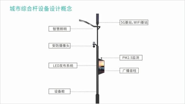 星空游戏自主研发的城市综合杆设备集“智慧照明”,“LED显示屏”,“安防摄像头”,“设备舱”,“5G基站,WIFI基站”,“PM2.5检测”,“广播音柱”为一体;高度符合5G网络铺设的必要性需求;同时,高度分层设计概念可为不同区域项目提供定制化解决方案;主荐产品型号有“LCF-1”“LCF-2”,目前已应用于国内多个城市建设项目之中!