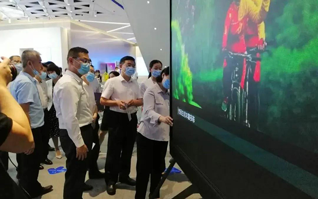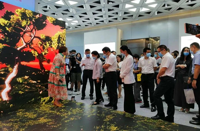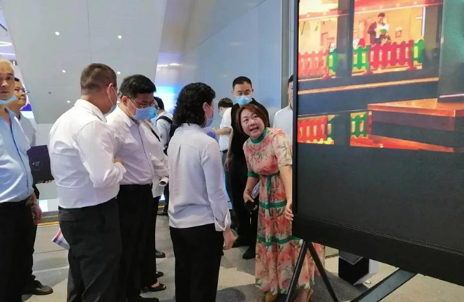 星空游戏总裁龙平芳女士亲自向各位领导讲解了星空游戏的企业定位,以及现场的两款核心产品;其中之一,“沉浸式互动视觉场景”是基于LED显示屏+3D互动数字技术,形成沉浸式视觉场景,主要应用与电影拍摄,文旅,夜游等领域;实现这种沉浸式显示体验,除了需要高端的屏幕显示技术,亦需要内容产业能够提供充分的制作、计算和存储能力。它融合了VR/AR、计算机多媒体技术,视觉内容,呈现新的“显示概念高地”。宝安区郭子平区长现场表示“想不到航城还有这样的好企业,要好好支持!”