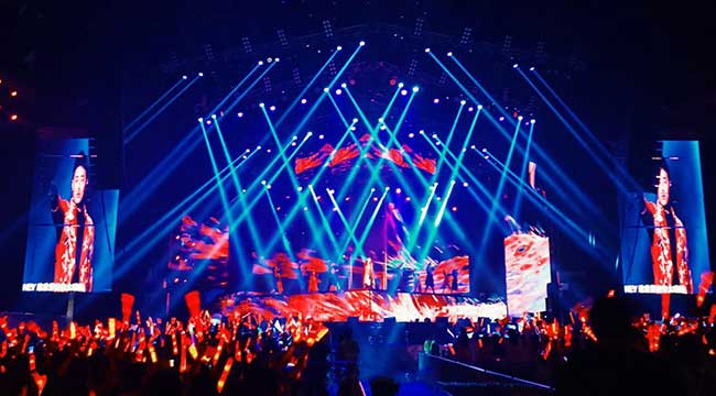 为了能够给粉丝带来更好的现场视觉效果,主办方选择了星空游戏作为现场效果显示技术支持,而星空游戏也是携带了最新研发的产品“龙腾”出击此次演唱会现场,在舞美造型,灯光效果和VR视觉、屏幕特效显示技术上都十分的用心。